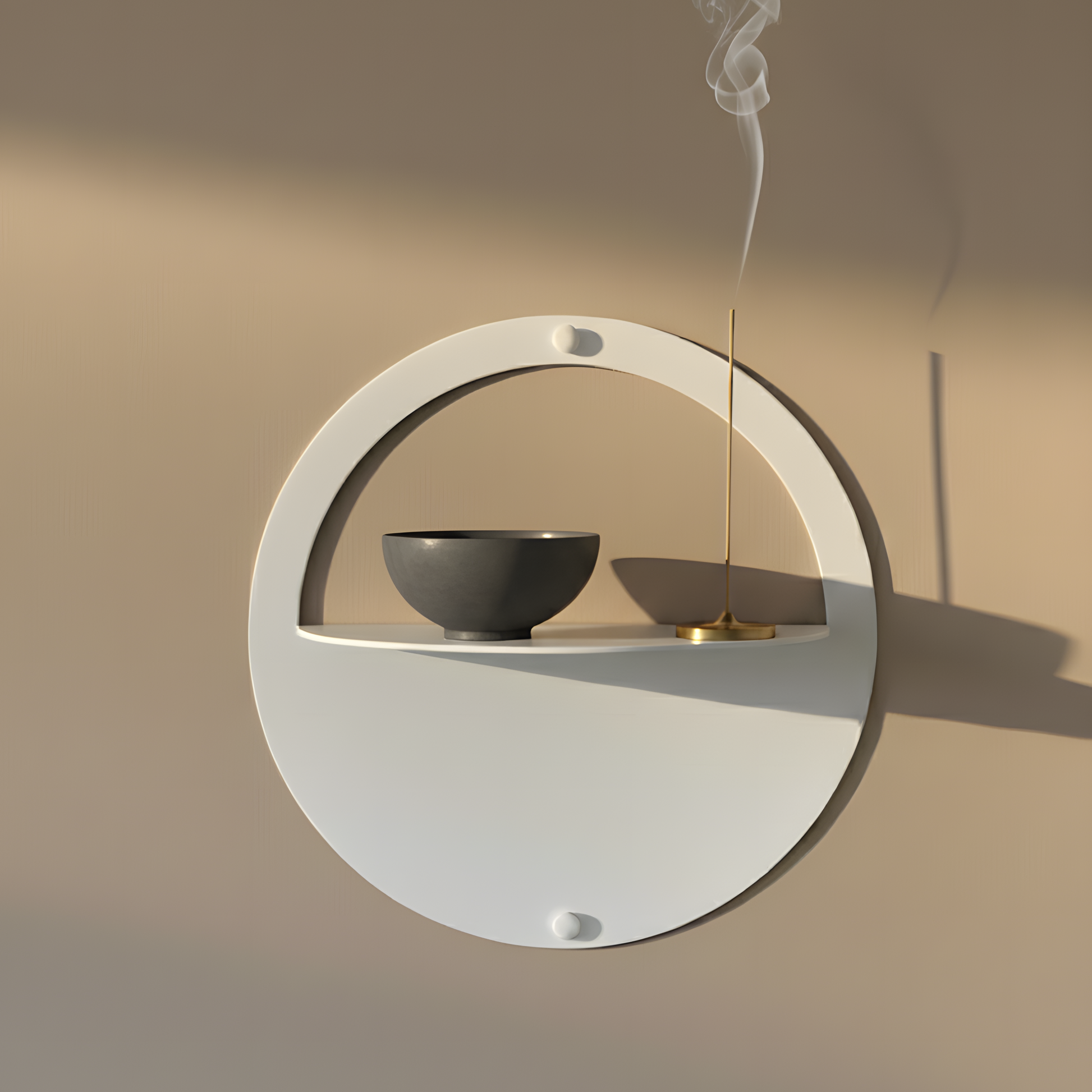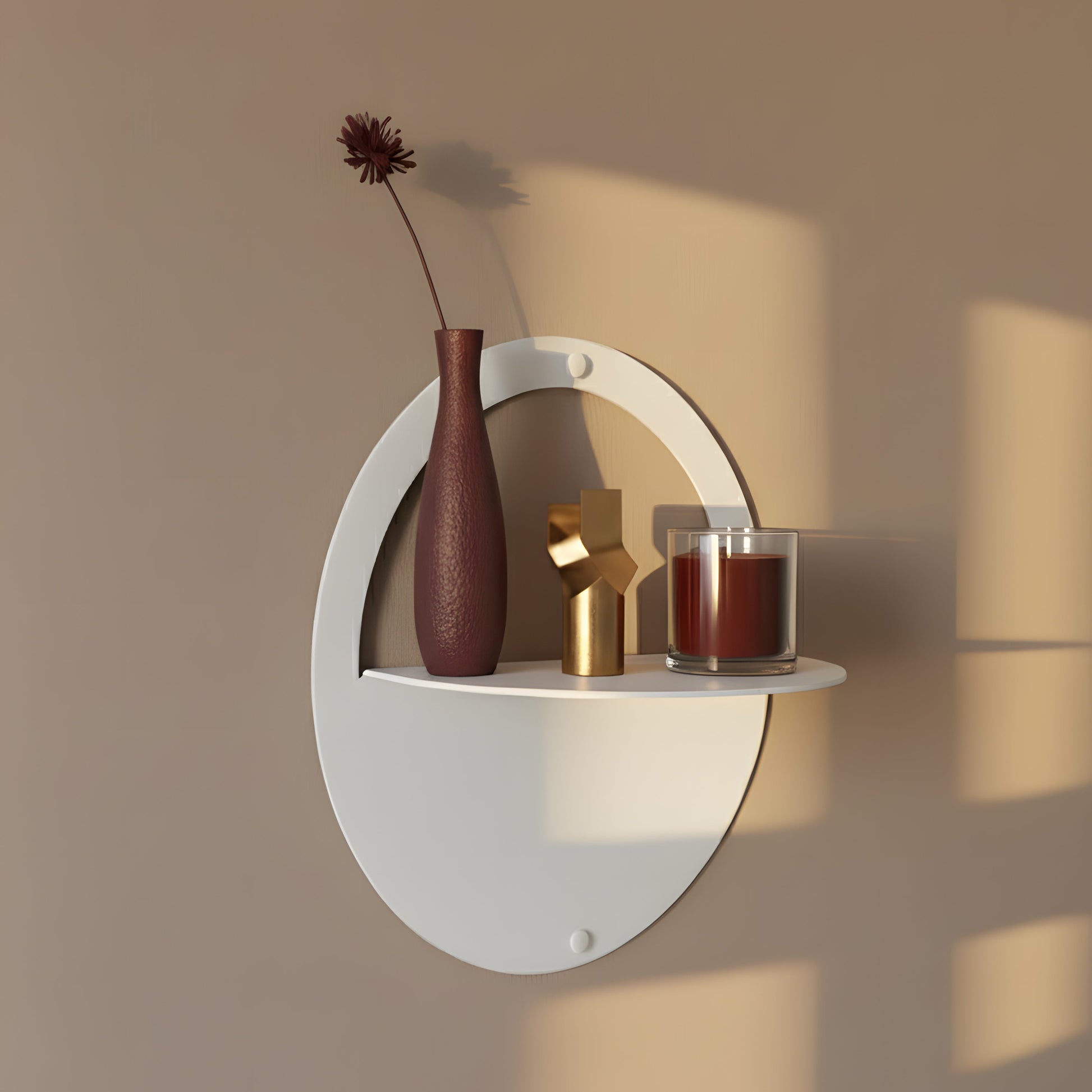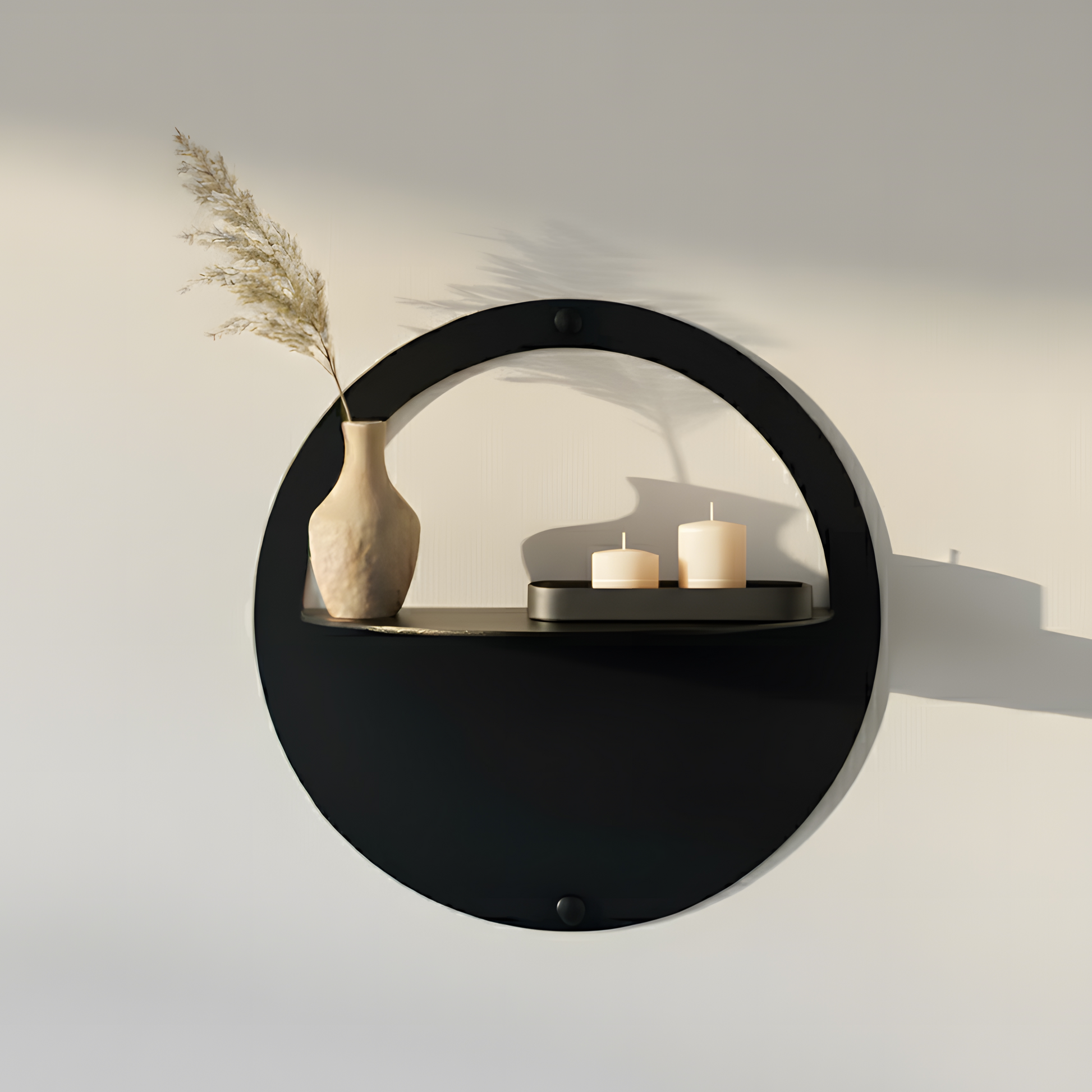 Simple and balanced, Eclisse turns geometry into a quiet statement. A perfect circle cut by a single line, it brings harmony and clarity to the wall. More than a shelf, it’s a symbol of order and the timeless elegance of Made in Italy.
